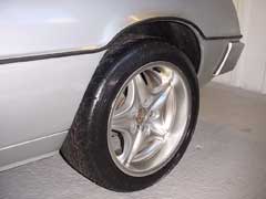 The wheel specs have changed and i have now spaced the front end of the car out 15mm,the spacers have been fitted and the front end looks fine,the rear end has know been spaced out 40mm taking advice from andy hills and looks a lot better than the flared arches that used to be there with the old car,the rears are tempory spacers as the engineered ones will be here in a couple of days,may i say at this stage thankyou to Andy Hills for the technical drawing he sent me for the spacers he has been fantastic. the wheels still needed centre caps and i did like the old esprit centre caps so i cut the back of them and bonded it to the bmw centre cap the look very origanal now and suit the car.