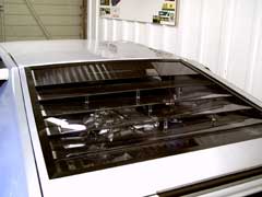 I have know finished the rear hatch by bonding in a final finishing strip round the outer edges and also placing a support beam on the lower deck to add some strength to the bottom louvre that was taking all the weight. High level brake light was needed to complete the look so i bought one from a local motor shop £14.50 for an l.e.d one and fitted it on the inside of the hatch see pictures. Electric arial was damaged so i decided to remove it rather than replace it,and placed a rubber grommet in its empty hole,a little bit more weight reduction.