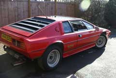 Turbo Year: 1986 Colour: Red Interior: Cream Driving Style: Normal Miles per year: 0 1,000 Owned Since: 2006 Purchase from: Private Serviced at: South West Lotus Other Cars: Mini, Zafira,CLK Previous Lotus': None Why an Esprit: My dream car. Wanted one since I saw the first on the road. Upgrades: None Problems: Engine: Smoke means failed MOT Info: