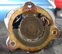 I had the front brake pads changed for EBC Greenstuff as well to assist in making the front brakes a little better, as we all know brakes are not a strong point and before changing the discs (which I will be doing later) I though this would help a little. Well when the old pads were removed you could see why they were so bad, where I had boiled the brakes last year the pads had got so hot that the paint on the reverse of the pads had actually blistered, and they still 6 months on smelt burnt and looked rather crisp. In addition they were glazed as hell so good job I decided to change them.
