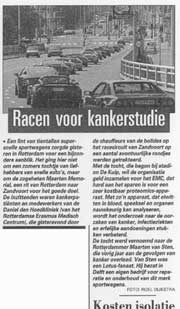 Yesterday saw the Maarten Memorial day with 78 cars turning up in Rotterdam and taking patients and staff from the Daniel Den Hoed clinic to Zandvoort race circuit. It was a great day and some fantastic cars. I think there were 5 Esprits all different. One guy in a Porsche jumped out of his car at a set of lights came up to me and said, 'your car sounds f*$#ing great'....We made the national Telegraf newspaper and 2 TV channels with the event and raised this far 52500 Euro for the clinic which is great
