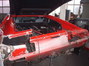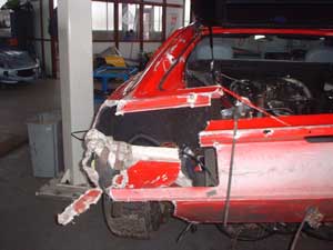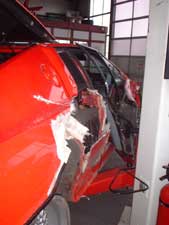 As you can see from the photos the body is completely wrecked on the right and the rear, the chassis was bent, the suspension was collapsed, the gearbox is cracked, the petrol tank split open on impact, the glass roof shattered, as did all right hand side windows, even things like the catches on the engine cover were completely twisted plus lots more...