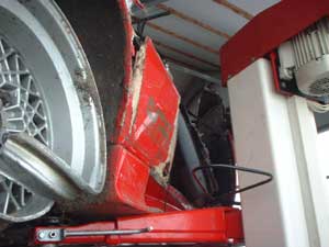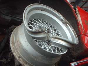 Basically I had just over taken a lorry at 50KPM and was going round a left hand curve when the back end violently slide to the left (strange being a rear wheel drive). The left rear wheel hit the kerb which spun me 180 so that the right hit the kerb at the same time mounting the grass central reservation. I slid across the grass and into a streetlamp, which impacted the right rear wheel. That spun me 180 again and backwards onto the other carriage way. Another car coming along smashed into the side of me and I slide off backwards into a ditch. The local authorities had to close the road for 2 hours whilst they cleared up all the mess and picked up all the bits of my car. She was then taken away to Van Sten Engineering where Maarten has written her off.