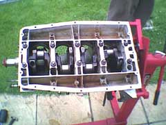 The crank was fitted with new main bearing shells, and the cleaned pistons fitted with new piston rings and big end shells.