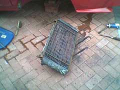 The old radiator was very corroded and has now been replaced with a high capacity triple core unit to improve cooling. The water pump was also leaking so new bearings and seals were fitted.