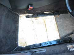 As the seats were quite badly vandalised they were replaced with new units which included a backrest angle adjustment. This would allow a more comfortable driving position to be found. The old runners just bolted to the bottom of the new seat. New mounting holes were drilled into the floor area and the new seats were bolted in place.