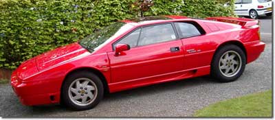 SEYear: 1989Colour: Calypso RedInterior: TanDriving Style: NormalMiles per year: 10,000+Owned Since: Feb 2002Purchase from: Bought in Hong Kong and shipped back to UK in Sept. 02.Serviced at: Steve Williams, Eton Wick.Other Cars: NonePrevious Lotus': This is the firstWhy an Esprit: Incredible performance for the price with looks to match. And, yes .. it is a Bond car also.Upgrades: Electric Booster Pump for the chargecooler. S4s race chip from Marcus (c 315bhp). Adjustable shocks from SJ Sportscars. N/side headlamp motor replaced. VDO Speedo and Water pump both reconditioned. New tyres front and rear. New washer motor. Problems: Current problems include a front caliper that occasionally sticks. I hope to have recon'd front pair of calipers fitted shortly. Still trying to get the adjustable shocks set up properly. Otherwise, the car has been excellent considering I have done almost 15,000 miles in the last 9 months. I intend to fit a cat bypass pipe and new exhaust box later this year.Info: The car has an interesting history. Originally UK registered, it was shipped to HK in the mid-late 90s and suffered a string of non-appreciative owners. It is now back on its original plates and seems to have benefitted from regular use.