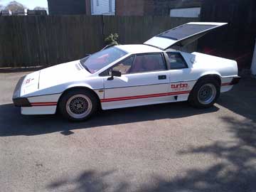 This white Turbo Esprit was built by Lotus at Hethel in November and December 1983. The PDI (inspection) was done on 18/1/1984, then registered as a Lotus company sales demonstrator and sold on 13/6/1985. It was a production build turbo without extras.