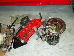 as you can see from above and below, there are a lot of moving parts to clean inside an esprit when it is being rebuilt. it'll be nice to get rid of the gearbox leak as well. as clean as i have kept the car, it is shocking to see how much dirt is missed. hopefully it will be back together this week. i am kind of running out of good weather to make the trip back to chicago.