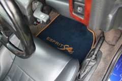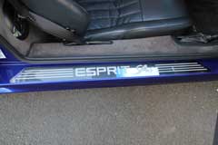 Mats with the S4S logo and of coarse in Azura blue,well Azura blue ish. The stainless steel control knobs and new clarion radio/cd/ipod player. Stainless steel door sills were made up for me by a friend,and a dam fine job he done too. Lower front spoiler has that beautiful carbon fibre look to it, thanks to a sheet of 3M carbon fibre wrap I brought off ebay, I then spent hours with a hair dryer pulling and stretching the wrap onto my now crease free lower front spoiler,and don't it look good.