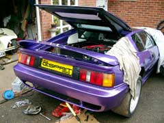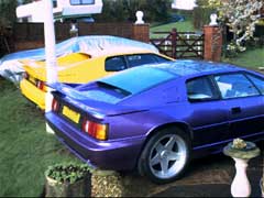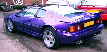 Turbo Year: 1988 Colour: Metallic Purple Interior: White & Black Leather Driving Style: Very much depends what CD I'm playing, and Road conditions. Miles per year: 1,000+ Owned Since: December 1999 Purchase from: Private Serviced at: SJ Sportscars & Myself Other Cars: Toyoto Supra, Delorean Gull Wing,Ford Falcon Ragtop Sports,E Type RoadsterS3 Previous Lotus': 86 Esprit Turbo and V8 Esprit Why an Esprit: Second best looking car in the world, Best F40 (I cant afford). Upgrades: Used to be Red But restyled by Dimma Design in 91,All interior Leather replaced with Connolly Leather, Recaro Seats Fitted,Awsome Music includes 4 Kenwood Amps, 3 Sub Woofers, 4 Speakers, 4 Tweaters 6 Disc CD Player Unit. Paint Job Met Purple, Rear v8 Look Spoiler, Front Rubber Skirt, Sports Steering Wheel, 5 Spoke 18inch Specially imported Alloys, Twin Stainless Sports Exhaust, Ram Air Mod, Green Cotton Airfilter, Clutch Pipe Replaced for Mod One, Problems: Loads and Loads: Engine Rebuilt last year Super Charge Lotus Pistons and Liners Fitted, Exhaust Manifold, Internal Knut came through Rear of Gearbox Casing, Dist Pickup Replaced, Petrol Pump Relay Replaced, Clutch Slave Cylinder Kit Fitted, Horn Electrical Connector Repaired, and not forgetting the Cig Lighter packing up.Plus all the normal service problems Brakes Cambelt Etc Etc. Info: See Below