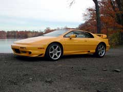V8 Year: 2001 Colour: Mica Yellow Interior: Black/Yellow Piping Driving Style: Aggressive Miles per year: 5,000 Owned Since: October 2004 Purchase from: Premiere Sports Cars, Inc. Serviced at: Michael's Motorsports/ Lotus Motorsports, N.E. Other Cars: 1993 Euro-spec BMW 850CSi, 1971 RoadRunner 440 SixPack, JEEP Liberty Renegade, Dodge Durango Previous Lotus': None Why an Esprit: Wanted a step up to the world of exotics with the performance of a Supercar for track use as well as "head-turning" effects on the street Upgrades: None yet. Soon – Red race chip, RAID airbag steering wheel, Chrono Magnesio wheels, Claudius-built twin intercoolers and BOVs, cam covers and plenum powder coated yellow to match the body, Quaiffe LS differential, a RAID Daytona Airbag steering whee, Claudius-built boost gauge, P.U.K. Red Race chipset Problems: Small coolant leak (source undiagnosed as of yet) Info: Hooked on driving school events. Love New Hampshire International and Watkins Glen. Don't care too much for Lime Rock Park and am looking forward to Mt. Tremblant next year. really looking forward to putting the Esprit through it's paces at it's limits on those tracks.