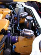I thought you might be interested in a few new photos of my 2001 Esprit. I have had Micheal Fridmann of Michael's Motorsports in Lexington, Massachusetts install some Claudius-built twin intercoolers and BOVs, had the intercoolers, cam covers and plenum powder coated yellow to match the body, installed a Quaiffe LS differential and installed a RAID Daytona Airbag steering wheel and a Claudius-built boost gauge.. I have also installed a P.U.K. Red Race chipset. I have had the car at a variety of tracks and it kicks a$$.