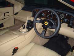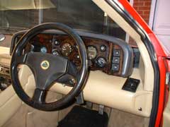 Momo Tuner steering wheel fitted (350mm) with Lotus centre (horn) badge - this required a new boss. All purchased from SJ Sports Cars. The horn unit (unusable in the 89' SE), required some modification to fit. The steering wheel has red stitching which suits my red Esprit.