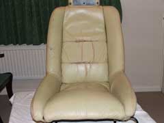 I used the gliptone kit £74 for sprayer, paint, cleaners and conditioners. The spray gun was quite useless so I bought a cheap air-brush kit from Halfords which was a lot better. I first of all tightened up the leather on the seats, using cable-ties and also tightened up the seat diaphrams. After that the seats were carefully cleaned, then given 2 coats of paint using a brush, so it gets into the creases etc. After that they were sprayed numerous times, building up to a nice thick skin. Unfortunately the red stitching on the seats was lost, as in most places the leather around the stitching was in poor repair and had to be re-coloured. I removed other parts of the leather trim that were easy to detatch and resprayed them, such as the glove box cover, the door cards, centre console cover and gear stick gaitor, and finally the rear pocket. All the other parts were painted by hand in-situ. Most of the red stitching was retained by brushing up to the stitching and carefully removing any paint with a damp cloth from the stitching. The whole refurbishment took 3 weeks working evenings and part of the weekends. Overall, it was hard work with the usual niggly stuff you come across when working on the Esprit, but the finish of the gliptone paint is remarkable, being indistinguishable from the original finish. The result is an interior that has retained the original patina of the leather that looks fresh and clean.
