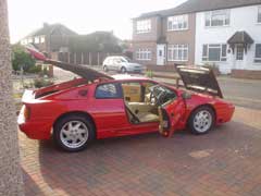 SEYear: 1989Colour: Calypso RedInterior: MagnoliaDriving Style: Very slowly at the momentMiles per year: 2,000 – 4,000Owned Since: 16th January 2006Purchase from: Privately off LEW's Sales page from an LEW member Geoff HymanServiced at: Not serviced yet!Other Cars: Granada Scorpio Estate (minus exhaust)Previous Lotus': NoneWhy an Esprit: Silly questionUpgrades: New rear sports exhaust box - Paul Matty. Re-cored radiator done by previous owner. Twin Exit Exhaust. Full Brake Upgrade. Original badges put back. Problems: Number plate fell off!Info: As previously owned by Geoff I am hoping the car will remain as pristine as it has been.