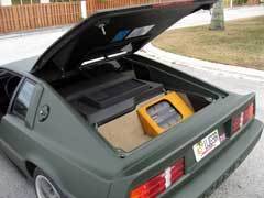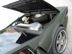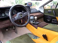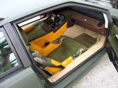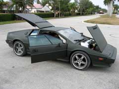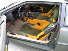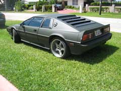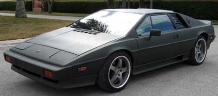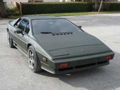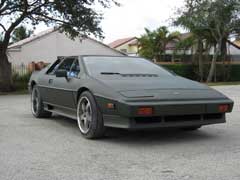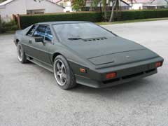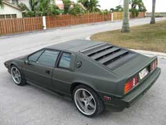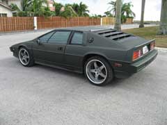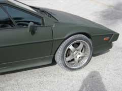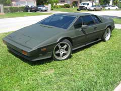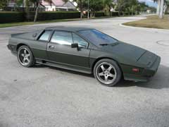 Turbo Esprit Year: 1985 Colour: Flat camo Green Interior: Green and gold faux suede with camouflage rip-stop nylon accents (for wear resistance) Driving Style: "Stealth" Miles per year: ??? just finished Owned Since: July 06 Purchase from: Ebay The second owner who sat on it for seven years while it baked in the California desert and never got to drive it 'cause he wasn't able to (afford to) repair it properly. Serviced at: a secret location in Queens NYC Other Cars: Range Rover HSE, two Maserati Biturbo spyders (one red one black, both running great!) Previous Lotus': in my dreams Why an Esprit: Everything else was impractical! Upgrades: Sound and video, Kenesis wheels custom made for this Lotus (offsets etc.) Problems: Slower traffic, Potholes...Oh, the Lotus? Runs rich (fire out of the exhaust during downshifting) needs new wheel bearings. None yet! Info: