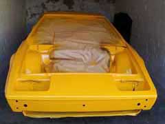 The whole car was going under repainting in August 2011 and had not seen the road again since this time. The car wasn't in a very good body condition and was bad painted. Somebody sprayed yellow on the calypso red, but in a very bad manner. Because I like the musturd yellow colour tone most of all paints I decided to give the car a unique new look.