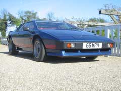 Upgrades: Car is standard and and has had a quick shifter gear linkage fitted as part of major service by SJ Sportscars. The bonnet was changed in 1987 due to an imperfection in the moulding (sink mark in fibreglass) resulting in a later version bonnet being fitted by the Lotus factory service centre in Hethel. For those in the know, the bonnet has 2 vents for the heater inlet as standard with the later HC Esprits, instead of the usual 5 vents on earlier cars.Problems: Only major work required in year 2000 to sort out usual exhaust manifold corrosion. Engine out and all seals, gaskets and clutch assembly replaced and put together like new by SJ Sportscars in Exeter .Well worth the trip to the west country as they are supreme in maintaining the Esprit mark.Info: Car is immaculate and has original Essex blue paintwork and interior trim. Have sourced a set of brand new original wheels and tyres in late 1999 with correct NCT Goodyear rubber (see photo). Now fitted, the car looks like new and sits at the correct ride height. The milage is 63,000, it runs well on super unleaded (Shell Optimax) and uses arond 1 litre of oil/1500 miles. No oil leaks, no smoke and still good for a standing 1/4 mile in 15 seconds. The car is also one of the 1st examples to have removable glass roof and ABS closure panels removed from the A post and gutter mouldings. I have retained the original black bumpers to match boot black louvers and was not tempted to repaint them in body coordinated colour as was fasionable in mid 80s.