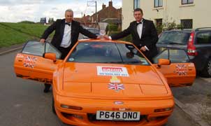 This weekend Adrian Heath & Jim Moyes in a 1997 GT3 won the 2006 Britball Run. Their Chrome Orange car was done up as a Bond car with gadgets including a rear mounted watercannon, orange smoke emitters, and fake machine guns at the front, they were dressed in tuxes