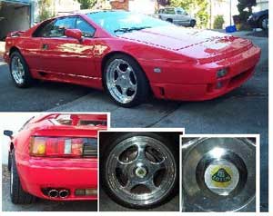 SE Year: 1990 Colour: Calypso Red Interior: Parchment Driving Style: I'm on the track Miles per year: 1,000 2,000 Owned Since: 1997 Purchase from: Private Sale Serviced at: mostly myself Other Cars: '67 Mercedes 250SE (my other SE), Mitsubullshit Ecrapse Previous Lotus': None Why an Esprit: I've loved the Esprit ever since I could remember. It's beautiful and it's fast. Definitely the most bang for the buck possible. Upgrades: Dual Flowmaster exhaust with dual tips orgeline wheels-17x8.5/17x9.5 SS clutch line orterfield brake pads Momo race seats, shiftknob, and pedals Sparco harnesses Aluminum fascia HKS turbo timer Compustar Alarm with pager Chrome reverse collar E-code headlights Clear bumper lights and sidemarkers Sony MD player with Alpine amp Subwoofer in passenger footwell Leatherique dye from tan to parchment Black carpet Lotus aluminum brake handle Momo steering wheel chip upgrade BOV SS brake lines Performance chip upgrade Porterfield brake pads w/Motul 600 K&N air filter Speedbleeder brake nipples All the usual fluids Problems: The car was flawless when I got it, the PO took very good care of the car. So I've been fortunate not to have any major problems. Only things I did have to do was the impeller rebuild, replace the red-hose, the fuel vapor lines, one of the fuel flap solenoids, replace coolant hose connector into the turbo, rear cam seals, the accel. cable, the clutch master and slave cylinders, and a few other minor things. In my opinion, the Esprit is a very reliable car...especially for how hard we drive them. That's why it's the best sub-$100K car in the world...no doubt. Info: Everything on the car I've installed or made myself except welding the flowmaster and installing the turbo timer.