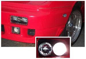 Above left: E-code headlights Clear bumper lights and sidemarkers I made the clear bumper lights by cutting two clear light covers I found at a local shop and glued them together. Now my parking lights match the head/foglights and sidemarkers all with super white lights.