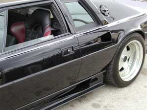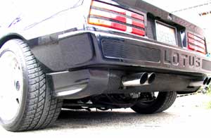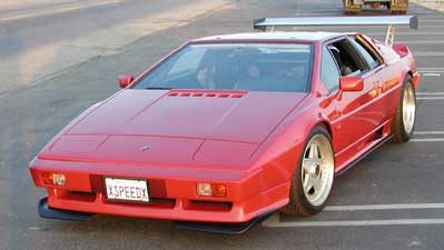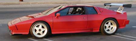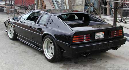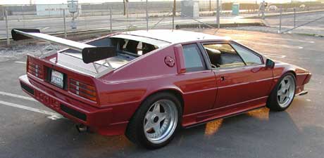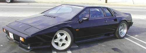 The Car right now (85 esprit) is black with a subtle violet colour shift in the sun. The rear spoiler is gone as it was used for a test to see what it would do to the overall performance. (knocked down the top speed to 150mph or so and not much else.) Plus, with all of the rice boys around here, it got a bad reputation by association to all of the neon's and honda's that stuck similar wings on for "better performance" :) Also, the front cross drilled rotors seem to do more to look cool than actual performance.