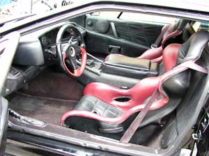 Interior there is Momo racing seats that I had leather covered and a momo steering wheel. I built a raised glove box to go over the center console which is 2 inches tall (supports the arm at perfect height for shifting as well as actually having a glove box there) I got tired of people pulling up on the original leather piece saying "oops, sorry, I thought that was a glove box"