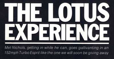Earlier sessions with Turbo Esprits had endowned me with that balmy knowledge and, as Roger began to wind the Turbo out in the gears, I nestled back into my snug leather lounge with a private smile, confident that the car would do nothing nasty to its driver and ready to enjoy the experience of watching him reach deep into it in order to sound its depths.