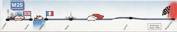 By now our 21.45 ferry was long gone, lost to the mountains, the police, a few photographs and a long, long journey. Fortunately there was another at 23.30, and we were back in fog-bound Blighty in the early hours of Friday morning, ready to hand on the batons to the next members of our relay team.
