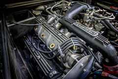 Pulling away easily on an uphill from a light, I roll into the throttle gently and find an abundance of stout turbocharged torque. The Esprit’s carburetted 2.2L four-cylinder is amazingly compact, even with all the associated plumbing for the turbocharger, and it makes somewhere in the neighbourhood of 215-220 hp, with torque to match. In today’s era of the direct-injected turbocharged engine, it’s like comparing lighting a Zippo to flicking on a lightswitch, but the Esprit has plenty of shove to match its sub-Miata curb weight.