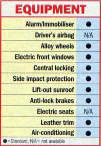 Airbags aren't on the list of safety precautions, but you are protected by side-impact beams, as well as the reassurance of anti-lock brakes. To ensure the envious and light-fingered can look but not touch, deadlocks and an alarm are now fitted as standard, and if a thief bypasses these there's an engine immobiliser to deal with too.
