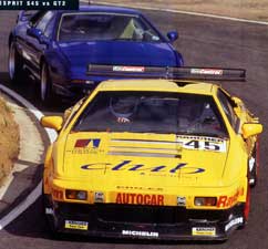 Howard-Chappell set a bogey time of 1:29.57sec in the S4s while I sized up the GT2. Like the McLarens, Honda NSXs, Porsche 911s, Ferrari F40s and the many other GTs that race in the world's most prestigious sportscar championship, the Esprit is no silhouette racer. Inside lie an Esprit engine and Esprit suspension, albeit both highly modified.
