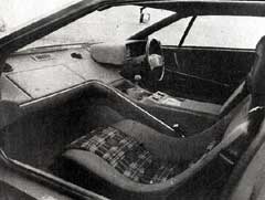 Seats are typical of this type of car couch-like, permanently reclining without any rake adjustment; the steering column is at the moment fixed too, rather than telescopically moveable, and the only adjustment available is of fore-and-aft seat position, with a ramp to lift it for shorter drivers. There is a useful range of this last movement, but no great amount of space behind the seats when a tall driver is using the car, as in other mid-engined coupés.