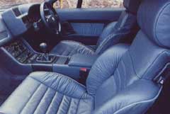 That of the Venturi is superior. Aston Martin could not better its striking leather-and-walnut cockpit, and Lotus cannot match it. It's tasteful, opulent and superbly executed (MVS makes much of its purple-prose brochure of cabin craftsmanship). Even though most of the facia's component parts switchgear, vents, heater controls are sourced from lesser cars (trying to identify them passes motorway time), the Venturi's dash is clean and cohesive. It's small, reflecting instruments are no easier to read than the Esprit's, attractive though they look as a cluster, but there's nothing to make you feel ill at ease at the leather-rimmed wheel of this tearaway, even less to induce self-consciousness. Pride and well-being, but never embarrassment. You do, however, feel deprived of aural uplift. Everyone condemned the hissing turbo as intrusive and uninteresting. Venturi would do better to cultivate a more stimulating sound as Honda has done with the NSX than that of a hoover nozzle with your finger up the spout.