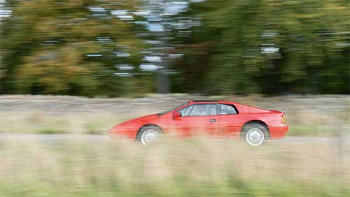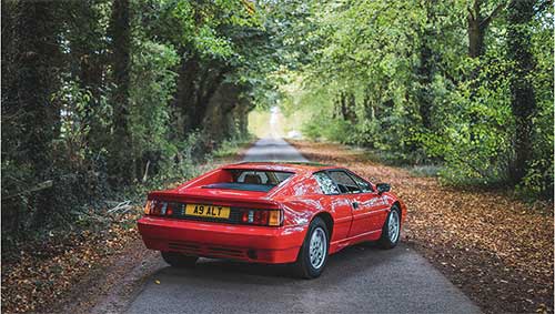The feeling back through the wheel is fantastic. Without any power assistance the steering has a weighty feel, meaning turn-in has to be deliberate. The best way to describe it is like a go-kart, not just in terms of responsiveness but also weight. When you pitch the car into a corner the nose tucks in neatly while the weight from the engine behind follows afterwards. There is a slight pendulum feel to this motion which (in most cars) would give an alarming sensation that the front is not connected to the rear. However, in the Esprit it just feeds the driver information about how the weight is loaded across the car and the result is that at every phase of the corner you know exactly what the car is doing. The rear end feels planted and stable and only the most exuberant driving will result in an enjoyable tail slide.