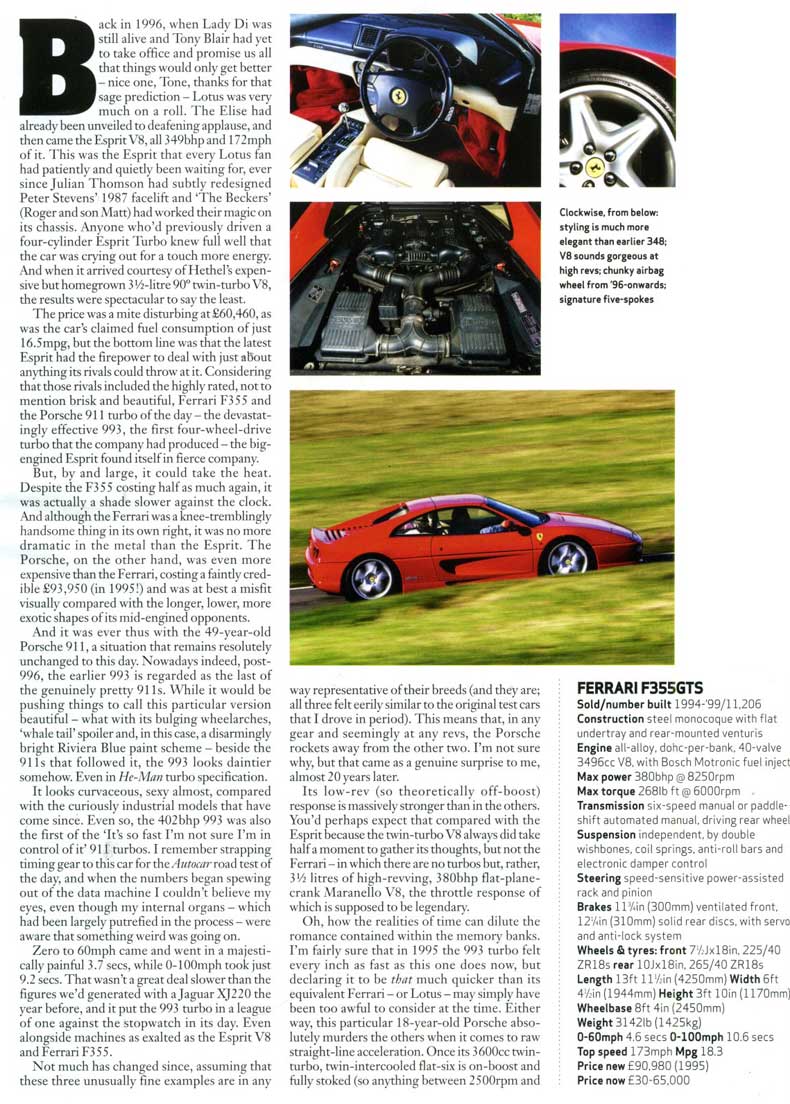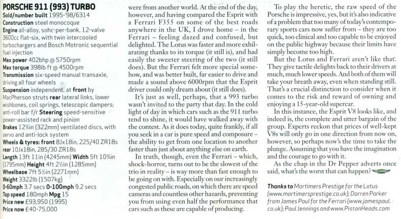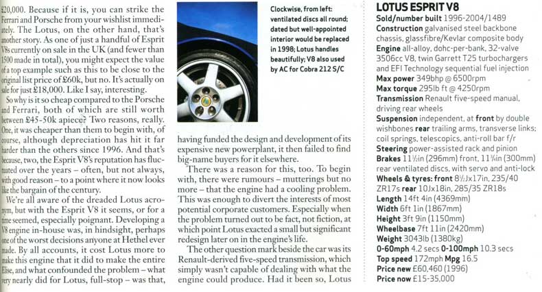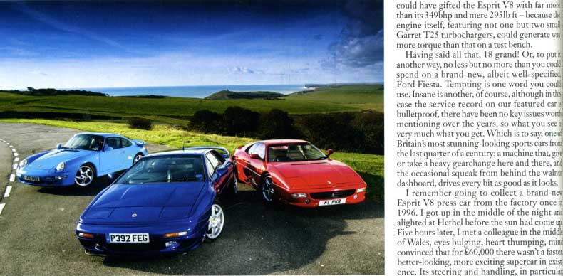 In the same magazine C&SC have a calendar give-away and one Esprit makes it in (unlike our calendar with 13 Esprits in). A beautiful Giuargio Esprit from a roadtest with 8 other cars, including Ferrari, porsche and BMW. Not a bad pic of the Esprit with it almost taking centre stage.
