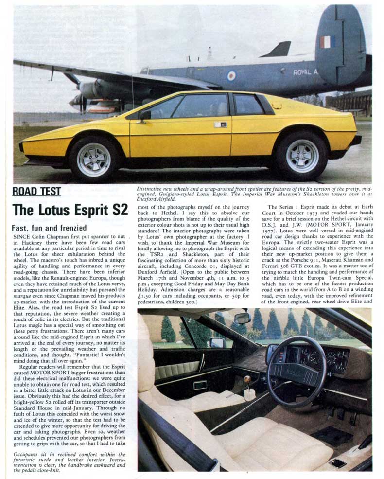home email news esprit models road tests buying an esprit running an esprit esprit owners maintenance pictures for sale history Lotus models links