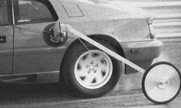 The performance data generated in our testing session underlines the fact that the chassis and drivetrain are unchanged from 1987. Acceleration, braking, skidpad, and slalom are all nearly equal to the last test we did with the Esprit Turbo. Both skidpad and slalom times are compromised slightly by the design intent for the car: high speeds over European-type roads. It would be possible to get better lateral acceleration performance on the skidpad and a higher speed through the slalom by altering the roll stiffness distribution, front to rear, to reduce understeer. Likewise, shock valving the bushing compliance could be altered to make the car more responsive in transient manoeuvres like slalom.