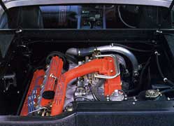 Such relative structural oneness, which can exceed the same virtue achieved in normal pressed steel body-chassis when the number of individual pressings is reduced, makes a considerably stiffer shell. That is no minor gain when what one might call the core chassis is, where it is most stressed, along its centre length (through the cockpit), a rectangular-section box beam, deep maybe but not nearly as wide, only widening to the T-like cross member in front, and the intrinsically stiff tubular cradle from rear bulkhead aft. To make a backbone chassis as torsionally stiff as the equivalent unitary steel shell of a conventional car, you need either a very heavy section backbone or to give it some help from the body. Since the body's weight is already there, it may as well be utilised.