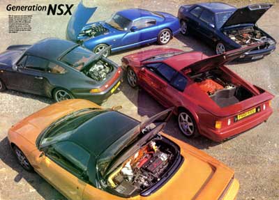 It's a straight fight for first, though: NSX versus 911. In truth, the 911 S isn't the 911 we'd have chosen. You don't have to have the silvery styling details but that's not the real complaint. The S takes the regular 911's wheels and tyres and, with the aid of rear wheel spacers, fits them under the wider Turbo body. This robs the 911 of some of its delicacy and apparently some performance, too; we couldn't better 5.3secs to 60 and 157mph – half a second and 2mph down on the standard Carrera.