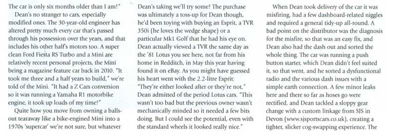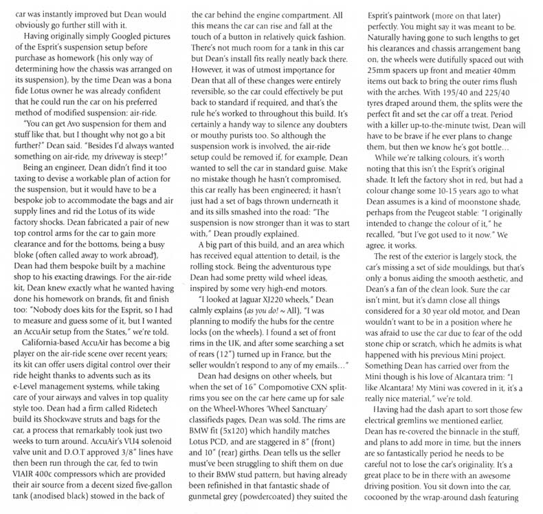 home email news esprit models road tests buying an esprit running an esprit esprit owners maintenance pictures for sale history Lotus models links