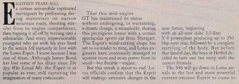 home email news esprit models road tests buying an esprit running an esprit esprit owners maintenance pictures for sale history Lotus models links