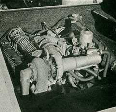 The installation does not require any major body modifications, and the standard engine cover with some slight ‘belling’ around the turbocharger suffices. The water pipes leading to and from the heated inlet manifold, and blower oil feed can be clearly seen. Compact though the set up is, hot air has to be ducted away from around the turbocharger into the wheel arch. Letting apart there is nothing to distinguish the turbocharged car from the standard article.