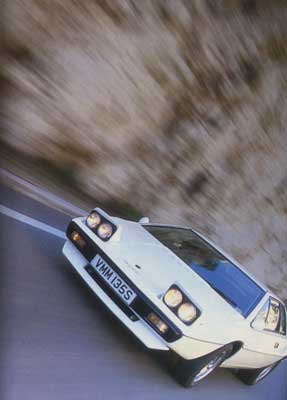 But who's complaining? Esprit S1s aren't meant to flounce along the autoroute, so do yourself a favour by popping it down a couple of cogs and heading back to the intoxicating twists that wend you along the magnificant craggy coastline. Suddenly the noise is music, the vibration becomes communication and you become Mario Andretti. Steering that felt clumsy at parking speeds with an impractically large turning circle beomces wonderfully balanced and sensitive, continuing a Lotus tradition that few, if any, can match even today. As the car darts unerringly to the apex of every corner, you have to pinch yourself to belive that the front suspension guiding you have been lifted virtually unchanged from the then-current Opel Ascona. The Lotus maxim of soft springs and taut dampers keeps the ride firm but not rattly and jarring, so you glide a path through the endless rocky outcrops like a yacht on the swell rather than bounce and skit across the road. In the dry, grip is not an issue the only thing that checks your confidence when cornering fast is the irritating lump of door pillar that stands perpetually between you and a clear view round the bend. Lean the car hard into the turn and it complies with a frugal dose of body roll, but unless the surface is greasy or you've got a death-wish the rear wheels will dutifully follow the fronts. It's strangely conforting to drive an excellent-handling car that isn't inclined to oversteer, and you quickly find yourself striving for impeccable lines and satisfying fluidity of motion rather than playing with the throttle like some trigger-happy rallycrosser. Who wants to be Tiff Needell when you can be Alain Prost?