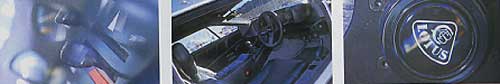 Dominating the dash in front of me is a huge cresent-shape instrument binnacle, which houses green-tinted Veglia analogue dials deep within it to virtually eliminate glare onto the steeply-raked windscreen. The three-pronged steering wheel (a welcome replacement on this car from the ugly two-pronged affair found on the first S1s) is an arm's length away, meaning you have to sit in a slightly knees-up position to feel comfortable. The view through the screen is fantastic except for the chunky door pillar that slant straight into your line of vision when you take all but the shollwest of corners. And to the rear? The dinky circular door mirrors offer a much finer view of the rear bodywork than of following traffic until yu cant your head, and the Esprit is as guilty as most mid-engined cars of the dreaded rear three-quarter blind spot unless you make sure to stop 90 degress to the give way line.