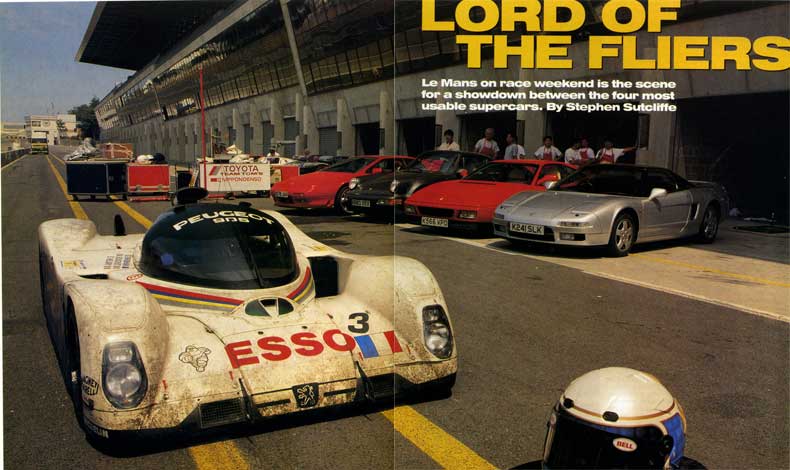 Le Mans on race weekend is the scene for a showdown between the four most useable supercars.