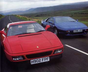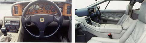 Less disappointing was the Esprit's interior, if only because we already know this was pretty awful. The Lotus gets plenty of leather although it's not of the same quality as the Ferrari's Connolly hides and seats which look inviting, once you can get into them (access is horribly limited, owing to the insufficient sweep of the door, and to the high sills you have to hurdle). But what really spoils the show is the appalling quality switchgear, no better than you'd get on an average kit car.