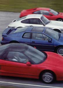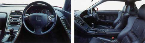 The Honda also has a disappointing cabin. Its dashboard has a nice sculpture, and the seats are easily the most comfortable and supportive of this group. The cockpit is roomier than the Ferrari's (although it lacks the 348's rear parcel shelf) and the Lotus's. And the pedals are perfectly place, good for heel 'n' toeing, well spaced, and supplemented by a wide left foot brace.