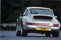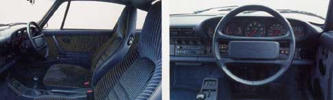 So does the Porsche. The 911's cabin is easily its weakest suit an important consideration, after all that's where you'll be spending most of your time in this car's company. The seats look cheap and lack both lateral and thigh support, the dashboard is a mess (you have to grope for some of the fiddly switches, scattered willy-nilly all over the cabin), the steering wheel doesn't look anything special (although it feels nice enough, as is well sized), there is no left foot rest (a major omission on a performance car), and some of the trim standard is dire (most prominently that awful Elastoplast that is the roof lining). Given so much of this car was changed during its metamorphosis into a Carrera 2 last year, why didn't the Stuttgart engineers do anything about the car's most glaring weakness? At least the switches and the whole cabin have chunkiness and a solidity rare today.